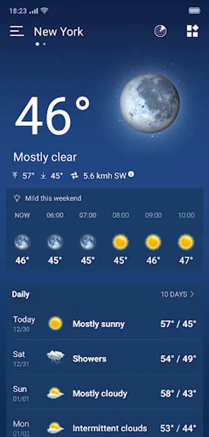 - Current weather and future weather forecast: real-time weather, hourly weather, daily weather