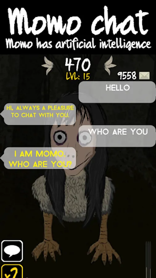Upgrade your Chat Bot horrible horror Momo to get more horror emails and calls! Don't forget to also improve your clicking skills to get your feathers out faster and protect yourself from horror messages!