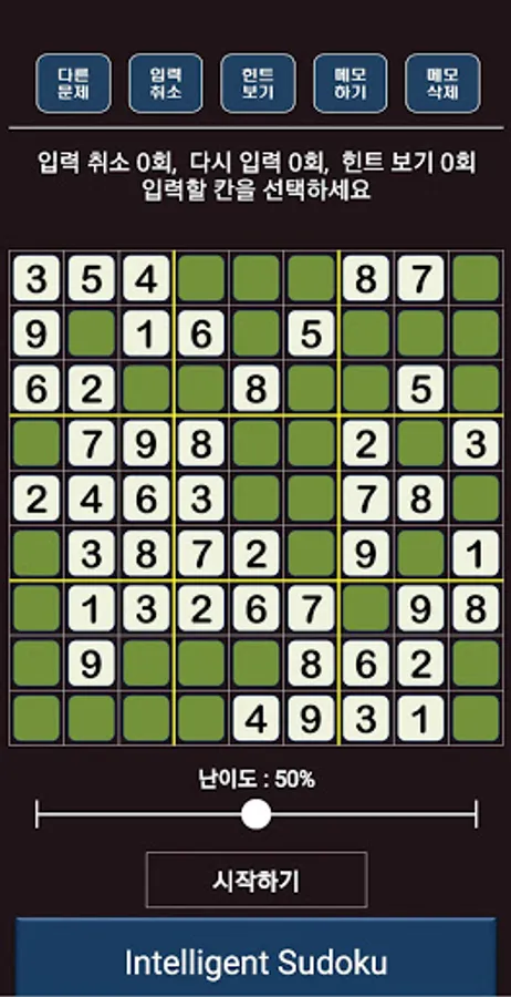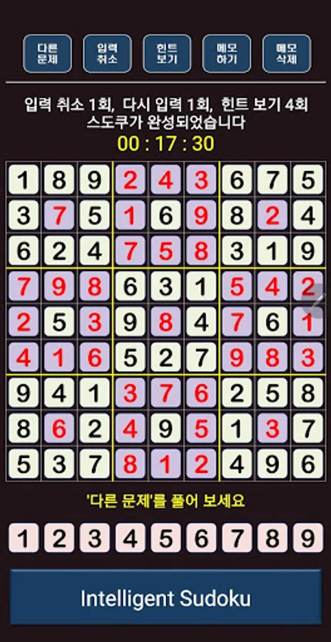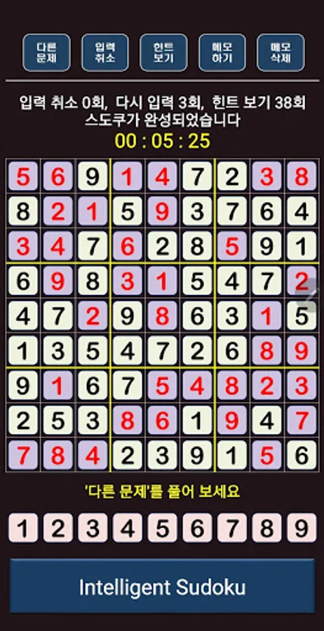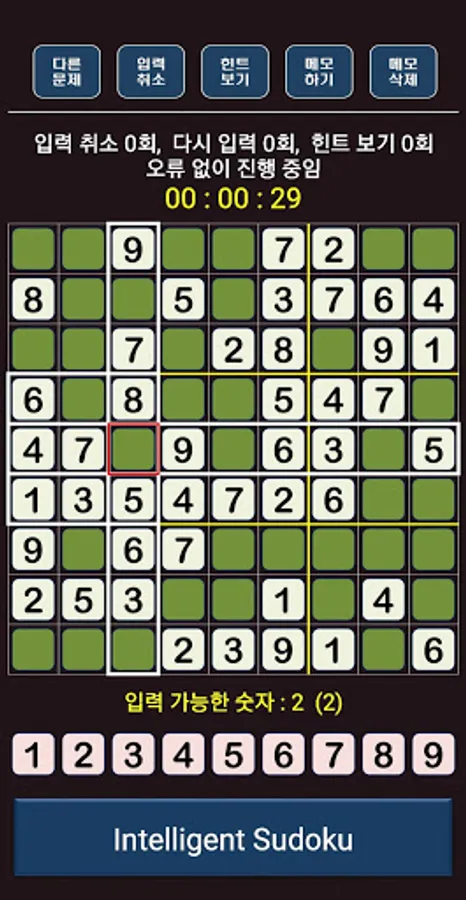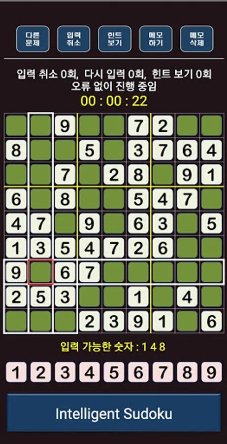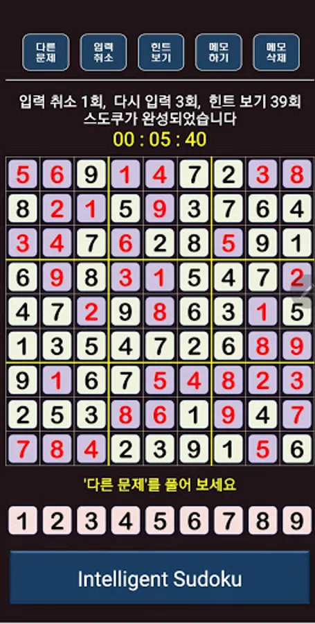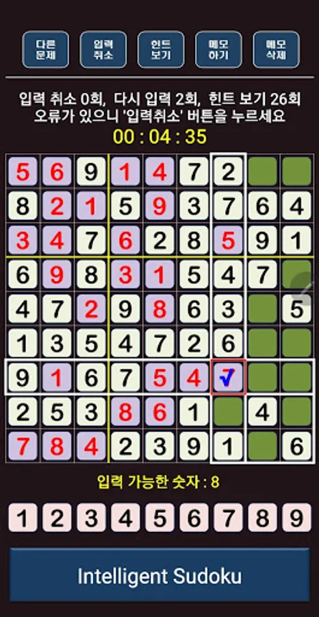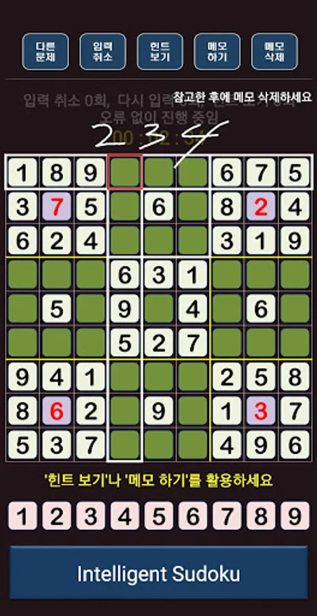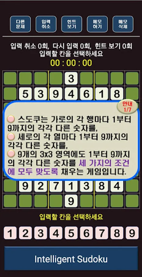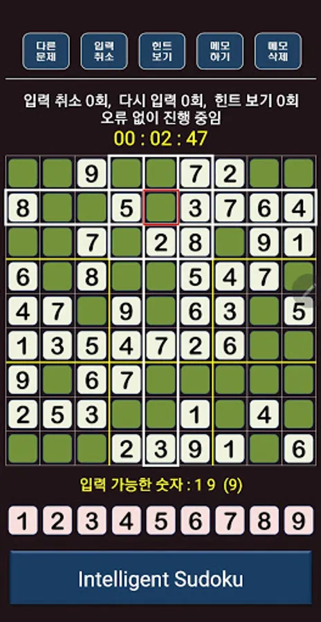 2. 입력할 칸을 먼저 선택하고, 화면 아래에 있는 1부터 9까지의 숫자 중에서 선택하시면 됩니다.