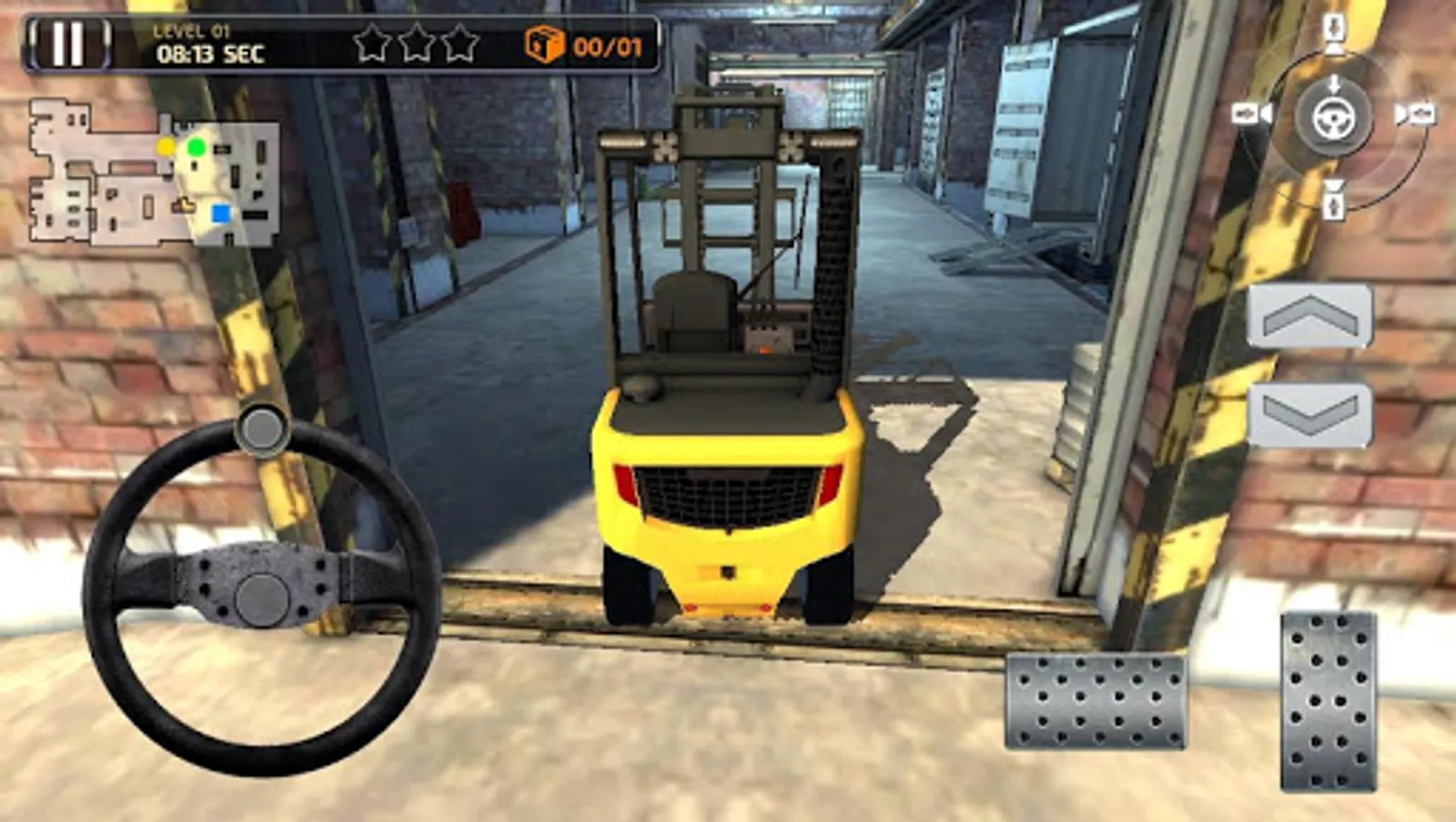 - Two objectives in each level! Drive around, pick up the crates, and park your forklift.