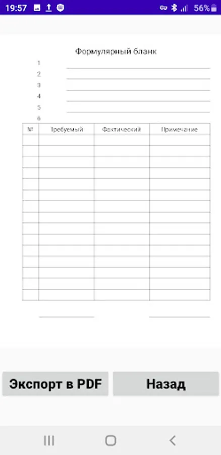 The [Export to PDF] button creates a form in the application folder at: /Android/data/form.aleavt.form/files/txtpdf