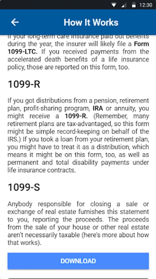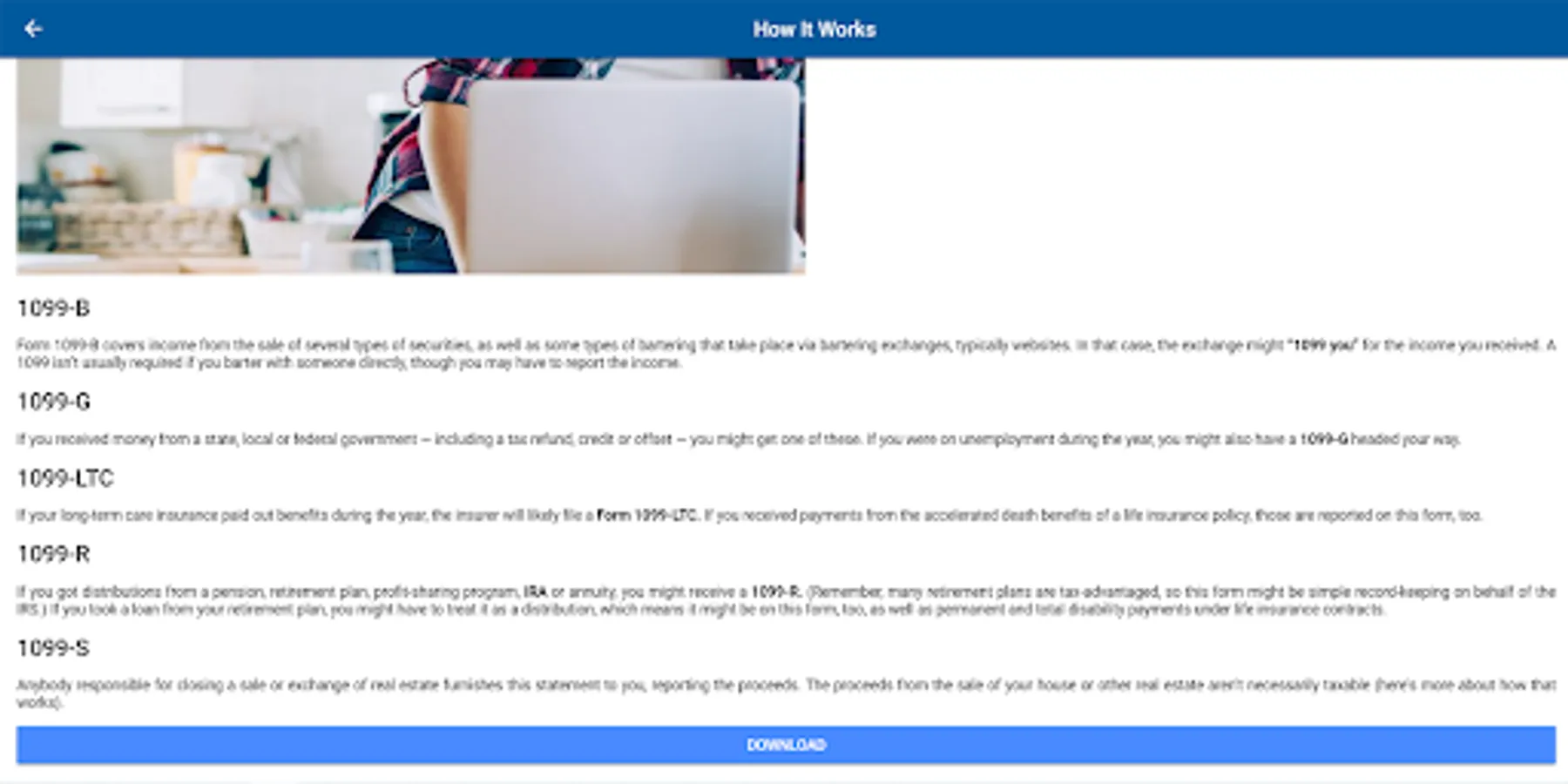 The 1099 form is a series of documents the Internal Revenue Service (IRS) refers to as "information returns." There are a number of different 1099 forms that report various types of payments you may receive throughout the year other than what a business might pay you.
