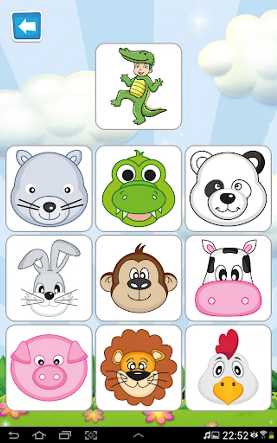 The game includes the appropriate sounds of animals, birds, instruments, etc. These (and other) sound effects are played on each correct answer.