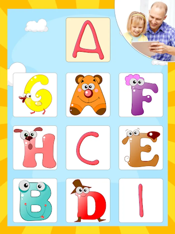 ✔ ABC math: deals with number recognition, counting and matching between the number and the quantity that represents it, matching between letters and animals' images, blending colors and more.