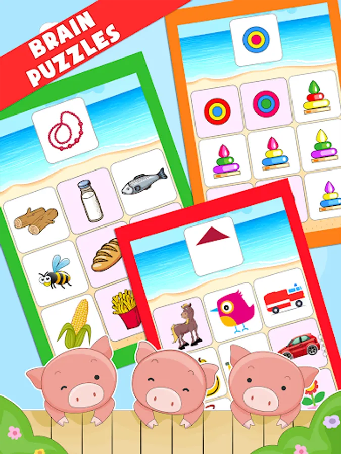 ✔ High skills: a whole section dedicated to high oral and sematic skills, matching between objects and their raw materials, and completing the puzzle shape.