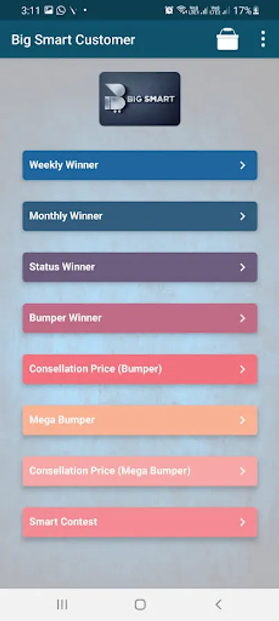 Big Mart proudly introducing Big Smart Card to serve our customers better than ever. Our customers are the most important part of our business, and we work tirelessly to ensure your complete satisfaction, now and later. By using this Big smart Card, customers can purchase from our outlets. By every weekend we will have a lucky draw winner and at the end, a bumper prize winner as well