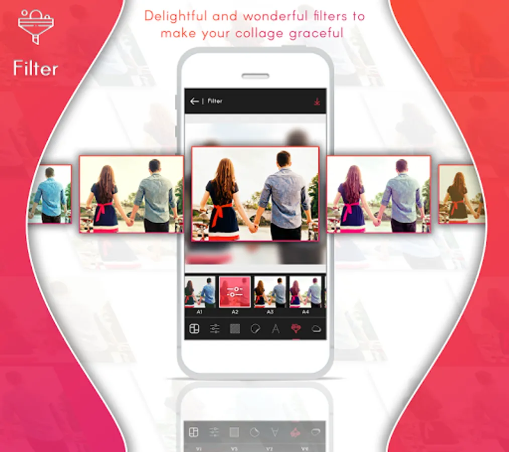 You can apply many photo filters and frames and collage photos. My Photo Collage allow you to add text, stickers, filter to your custom photos.