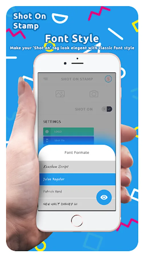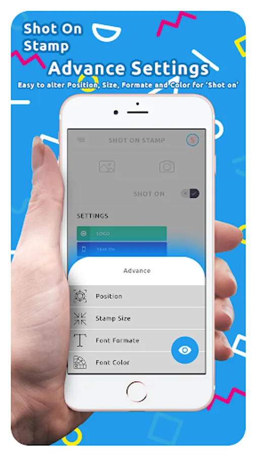 "ShotOn Stamp" is a simple app that provides you the functionality to auto add “ShotOn” tags watermark on your photographs captured from the built-in camera.