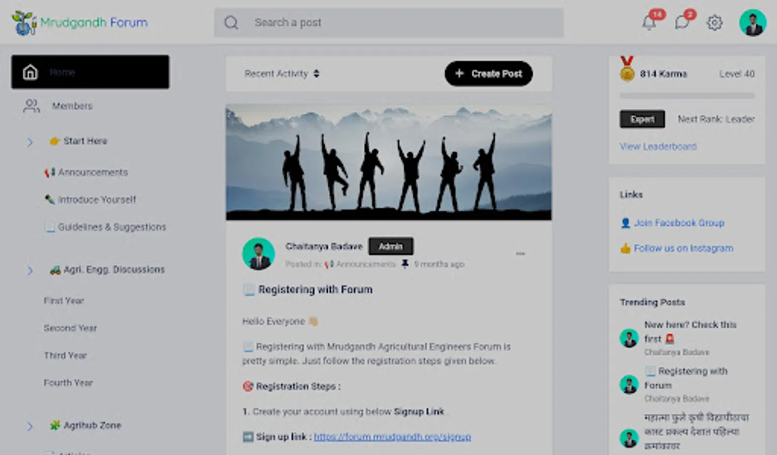 Mrudgandh Forum is built with a vision to build global relationships with agricultural students, entrepreneurs, farmers & everyone interested in agriculture through discussions, startup talks and helping each other resolving real world problems.