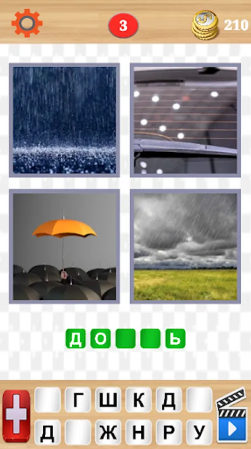По правилу вы должны отгодать слову который связан с 4-ми картинками которые намекают на одну общую слову.За каждую отгаданную слову вы получите 5 монет и переходите на следующий уровень,а если вы не можете отгодать слову,то вы можете получить помощь.