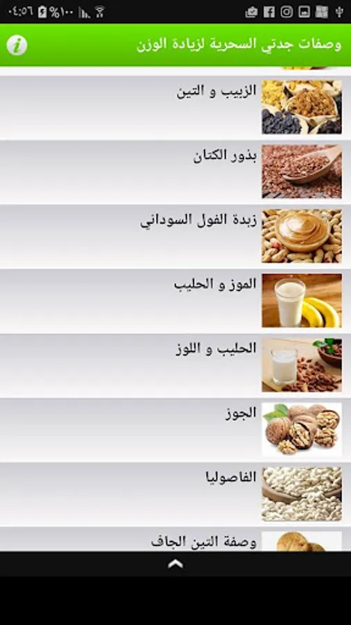 يحتوي التطبيق على عدة وصفة لزيادة الوزن بسرعة بدون أنترنيت متجددة بستمرار و هذه بعضها :