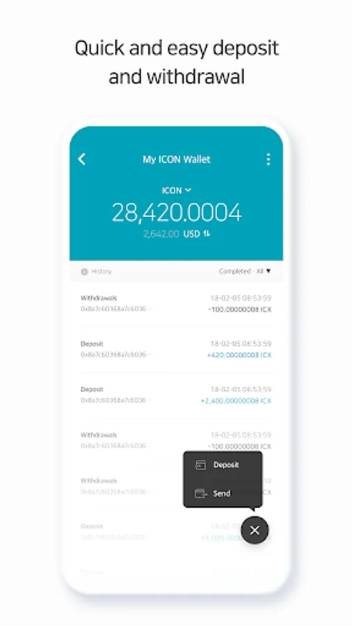 1. Convenient : ICONex enables you to create and manage wallets supporting ICX and various cryptocurrencies. Take pleasure in the convenient functions of managing your wallets which includes "Export of Wallet Bundles" and "Password settings for each wallet".