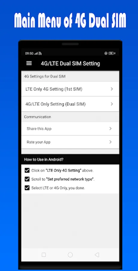 4g only network mode and lte only network mode for dual sim supports, jio sim, airtel sim, tata, voda, idea al sim support. 4g only network mode opens a very useful setting of menu where advanced network configurations can be selected for dual sim setup. features -