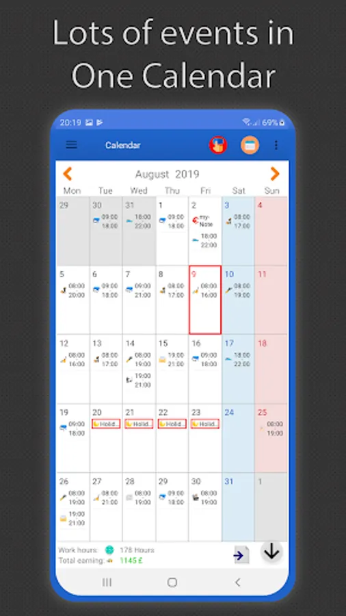 Multiple Jobs: Add how many jobs do you want with different colors and notes and distinguish the events into the calendar At a glance!