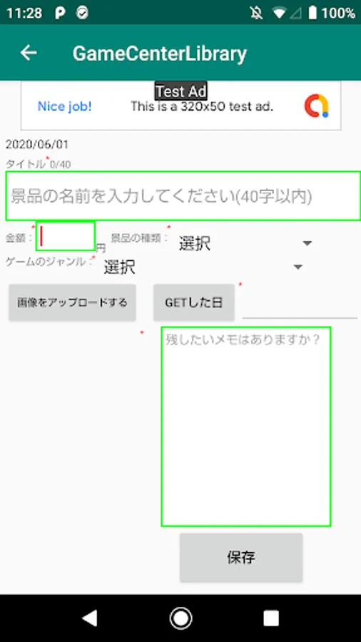 Press the "Save" button from the main menu to go to the "Save screen".In the "Save screen", enter the title of the required items, the amount of money used to get the prize, the image, what kind of image it is, and the genre of the game, the date when the prize was won.The memo is not mandatory, so feel free to leave it.If you do not fill in the memo, it is said to be "None". If there is no problem, please press the save button.