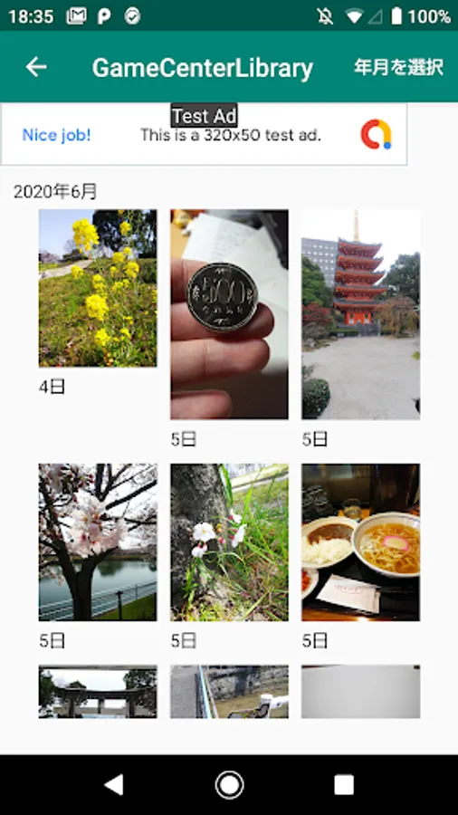 Press the "Library" button from the main menu to go to the "Library screen". On this screen, you can check the images and memos of the prizes you have saved.Select the year and month and tap the image you want to see .