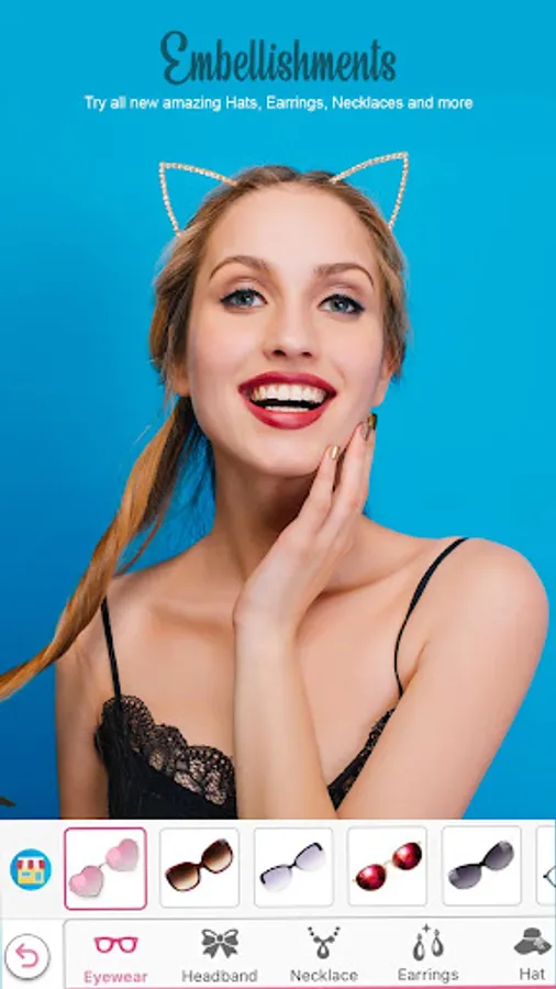 ✨ Try some astonishing features like highlighting your eyes, editing eye color, longer eyelashes, eye shadows, cat eyes with an eyeliner editor, embellishing your eyebrows and so much more.