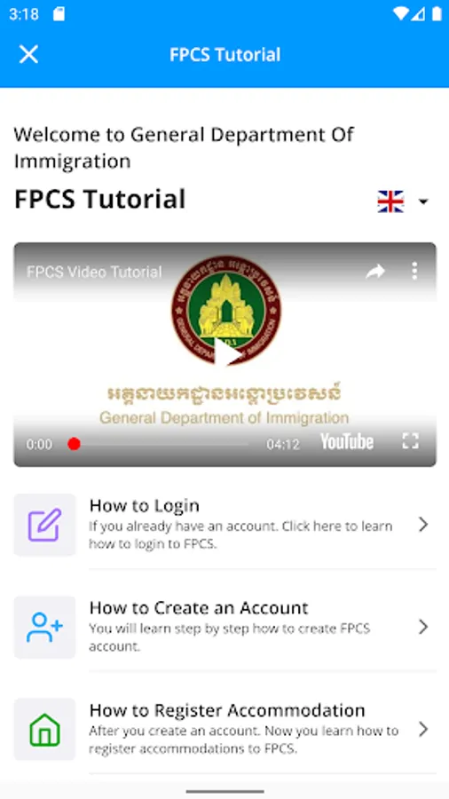 FPCS ( Foreigners Present in Cambodia System ) app is to manage foreigner's information regarding their stay in Cambodia. It will record foreigner information when they arrive in Cambodia at any entry point. It will also record their data when they leave Cambodia. The main purpose of FPCS is to protect foreigner safety and security in case of emergency when they are traveling throughout Cambodia.