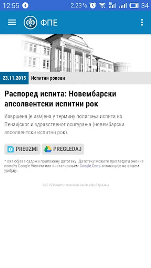 The application allows students of the Faculty of Business Economy Bijeljina, to easily monitor all information published on the website of FPE.
