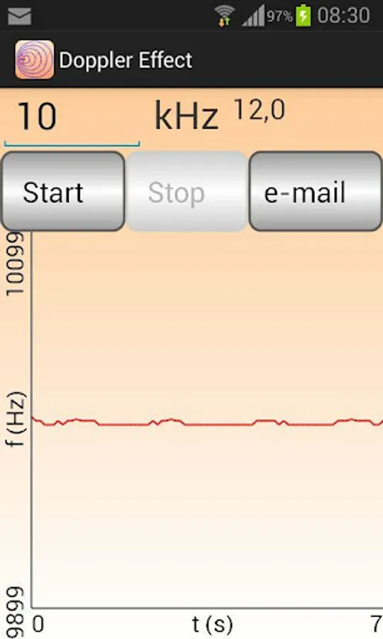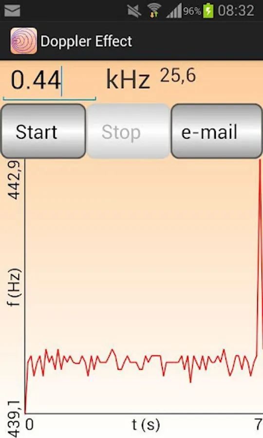 The app records the values of the frequency as a function of time in a text file that can be emailed.