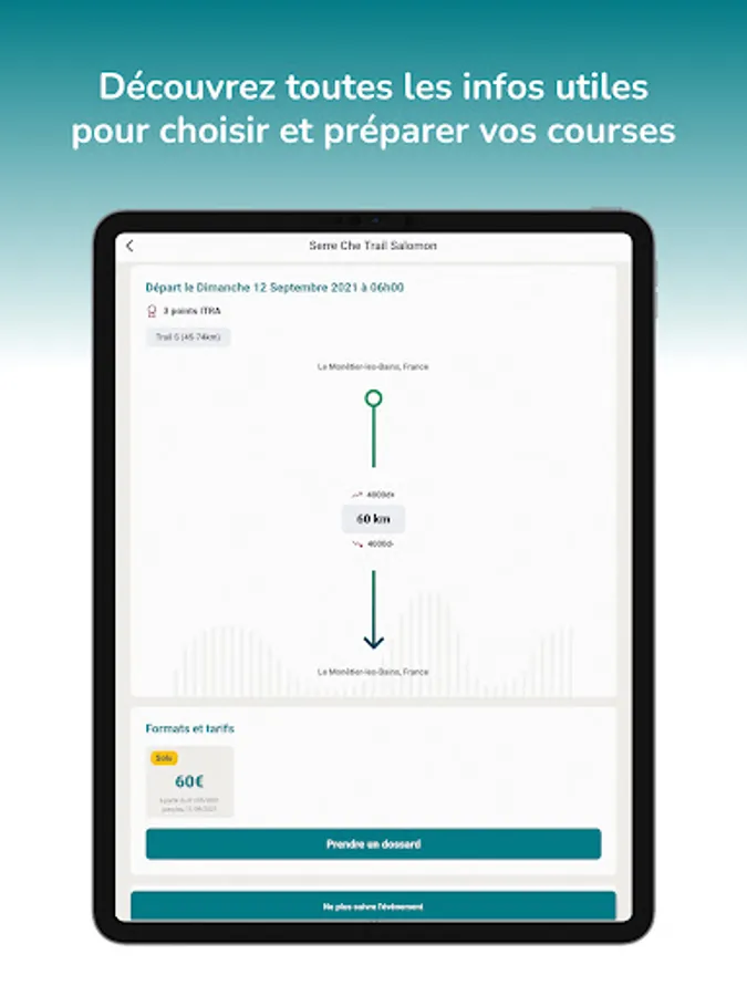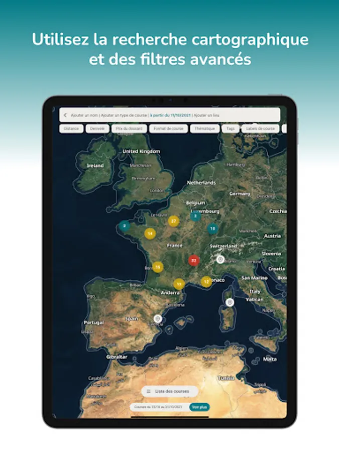 In a few seconds, do a precise search to find a race that suits you thanks to the advanced filters: location, distance, height difference, formats, themes ...
