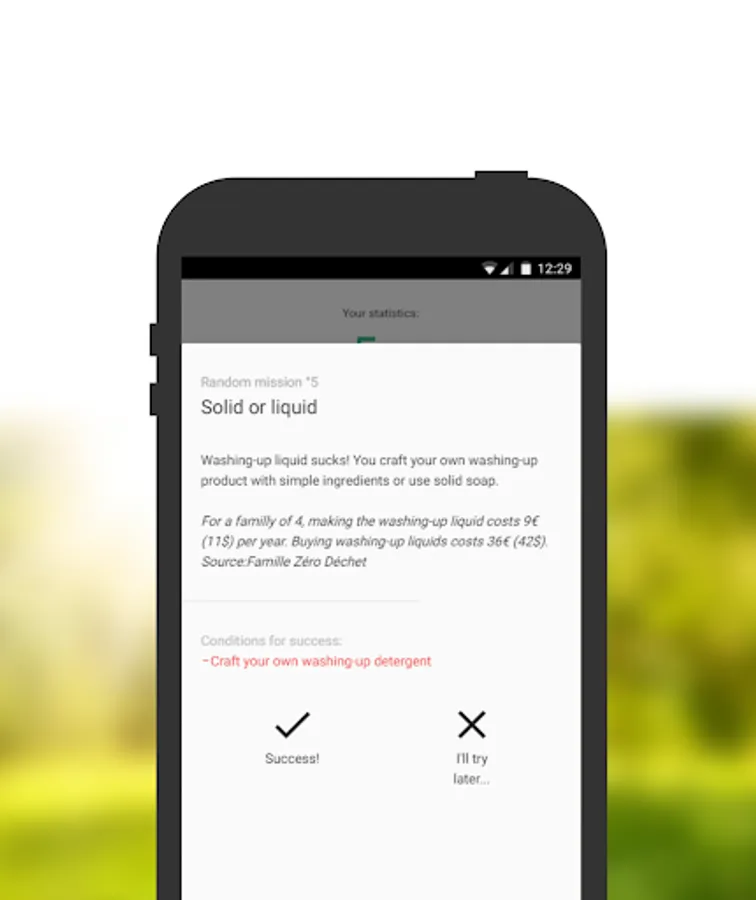 ZERO WASTE OBJECTIVE is a personal coach that proposes you missions to accomplish. More success missions, less trash you make.