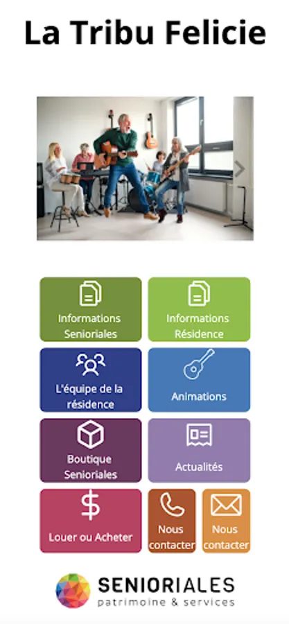 Find all the information about Senioriales and the residences. Follow the news of the residence where your relative is staying, find the products and services of our partners and be aware of the news, access the schedule of events, discover the residence teams, contact for any information... This application will allow you to be informed about life in residence.