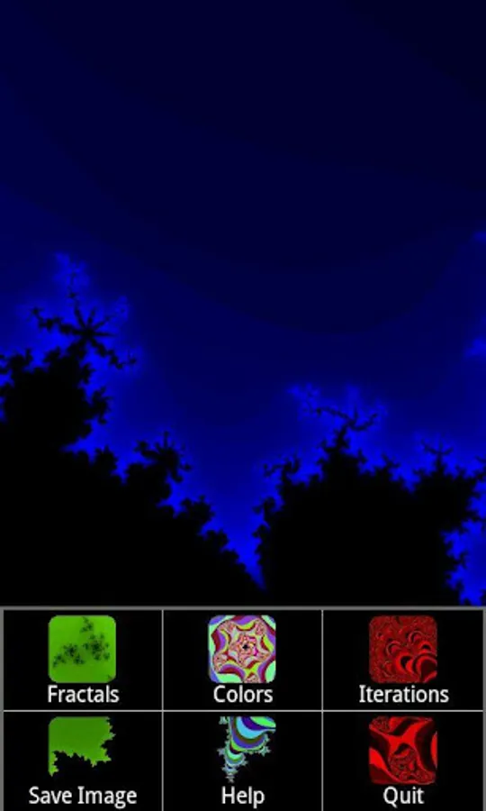 Change the fractal set, the colors and the level of iterations from the menu.