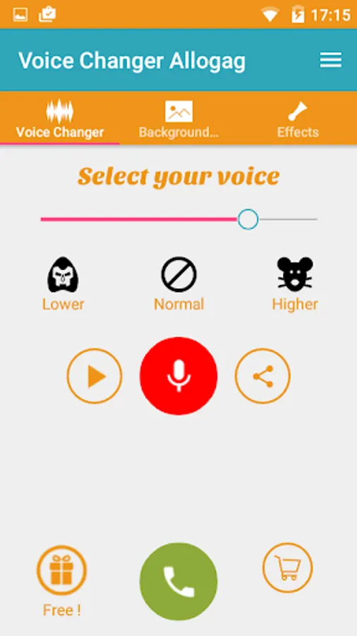 Tired of voice changers that give you random exemples of voice changing and don't show how YOUR voice will sound before calling ? With Voice Changer Allogag precisely and manually adjust voice changing effects and preview the result on YOUR voice. Imitate a lot of different voices thanks to our manual voice changing system. Because we think YOU should choose the perfect voice, we don't offer pre-selected voices.