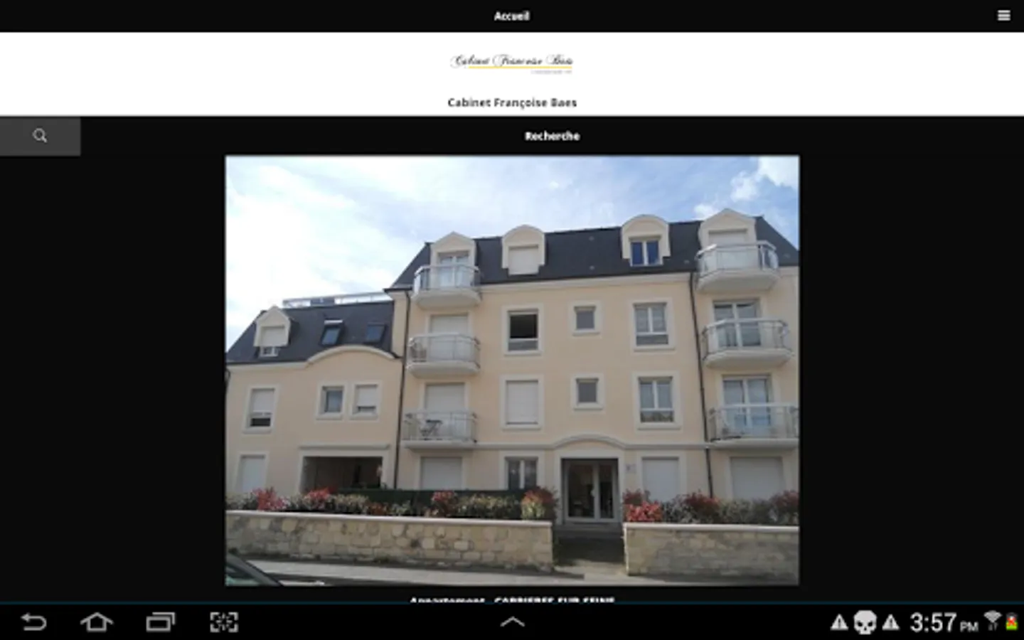 The estate agency Cabinet Baes Francoise and his team are pleased to welcome you to their android application (also available on IOS). A unique opportunity to discover the apartment or the house of your dreams!