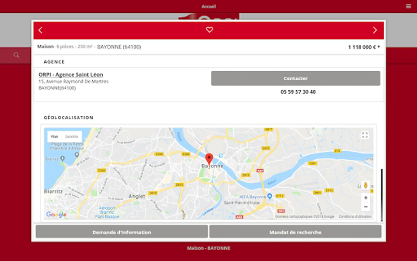 Located in Bayonne, the agency ORPI SAINT LEON is pleased to welcome you on its Android app (also available on Apple).