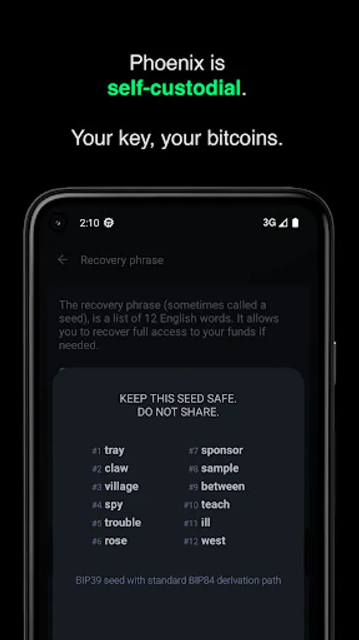 Phoenix is also self-custodial: you (and only you) have control of the key of the wallet. Backup the key, and make sure to keep it safe!