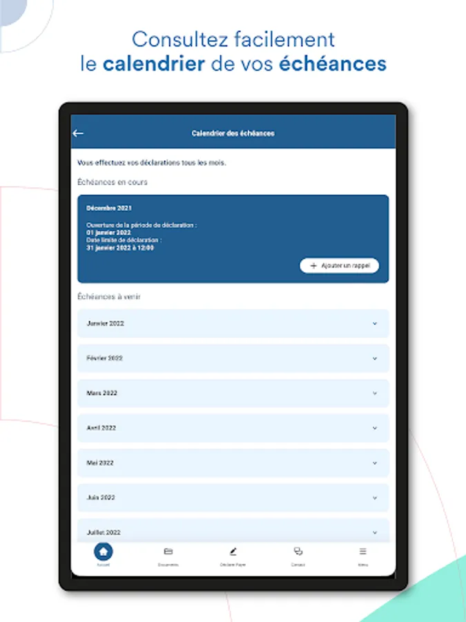 It allows in a few clicks to declare its turnover and to pay its social contributions in a simple and fast way.