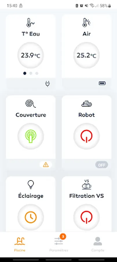 For all your equipment: standard or VS filtration, projectors, chlorine injection, pH injection, electrolysers, heat pump, booster, NCC, Spas, Balneo, Hydraulic robot, above-ground or submerged shutter, water temperature, temperature of air…