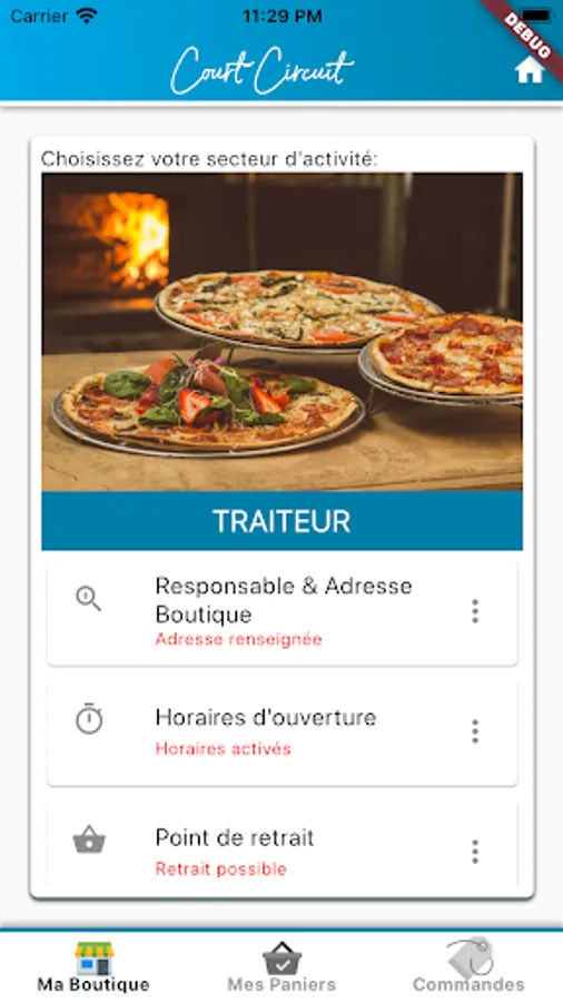 You are a displayed trader, your timetables, your delivery or withdrawal method and your baskets.