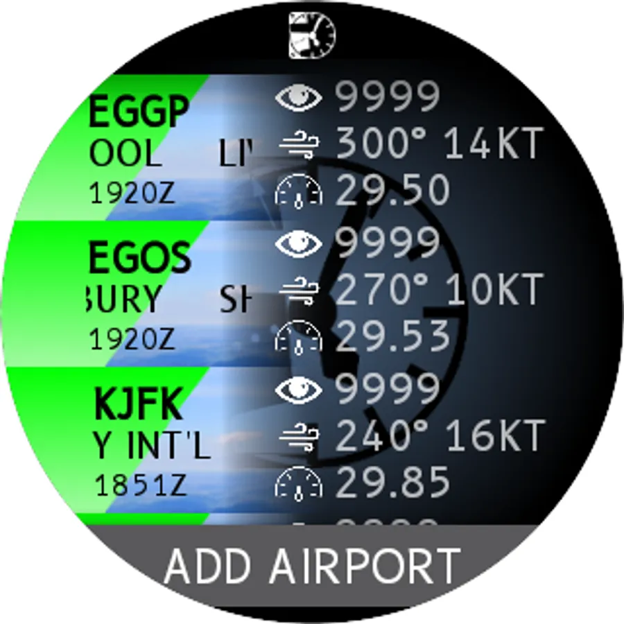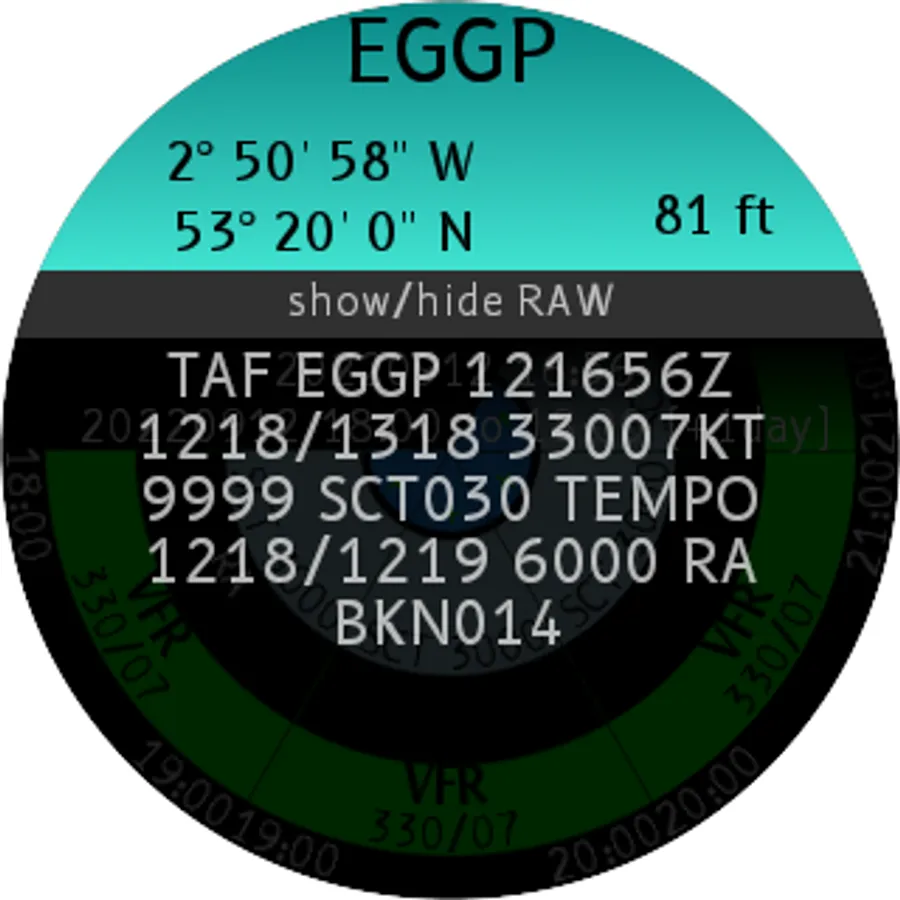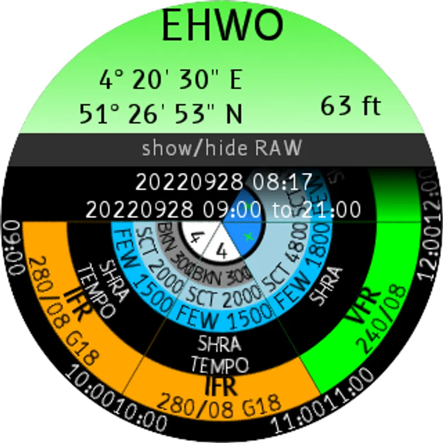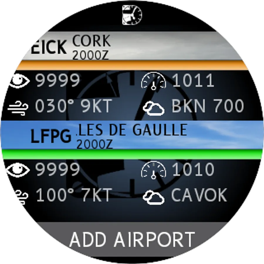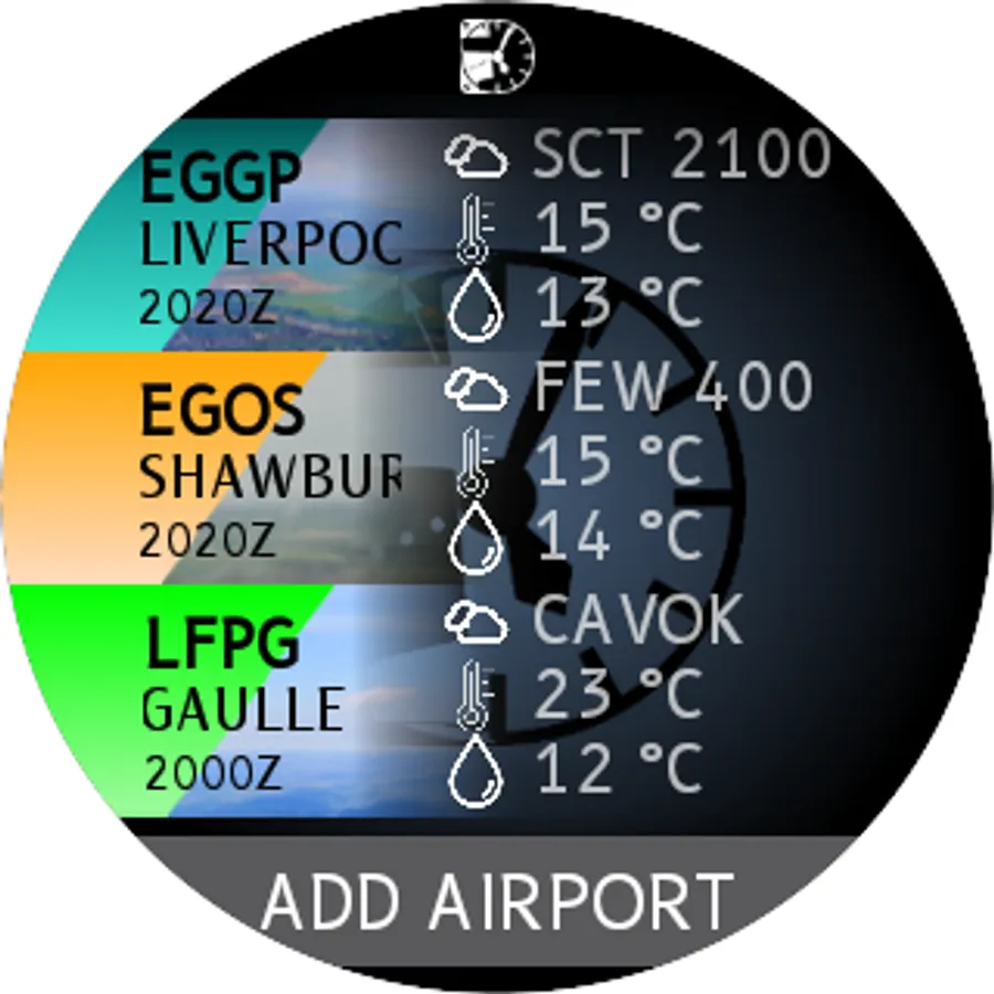 Choose up to 20 airports and check at a glance the meteorological situation of them. Select one of them and then read the decoded METAR and, if available, the decoded TAF using the exclusive TAF-on-WHEEL display.