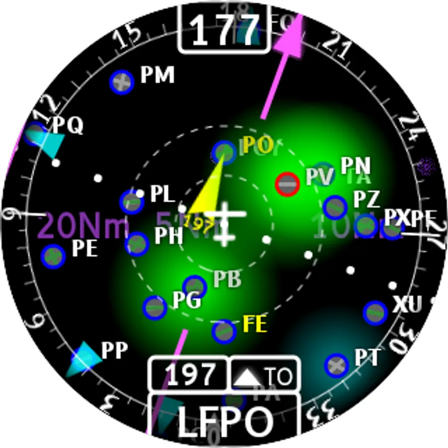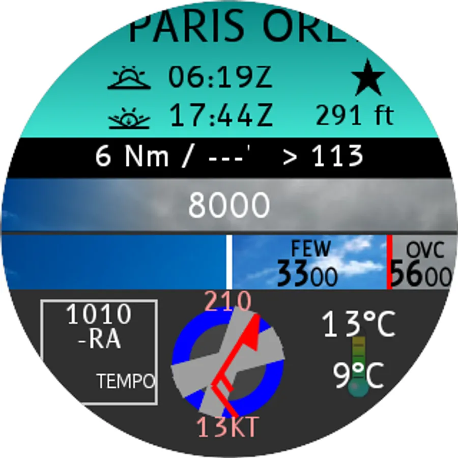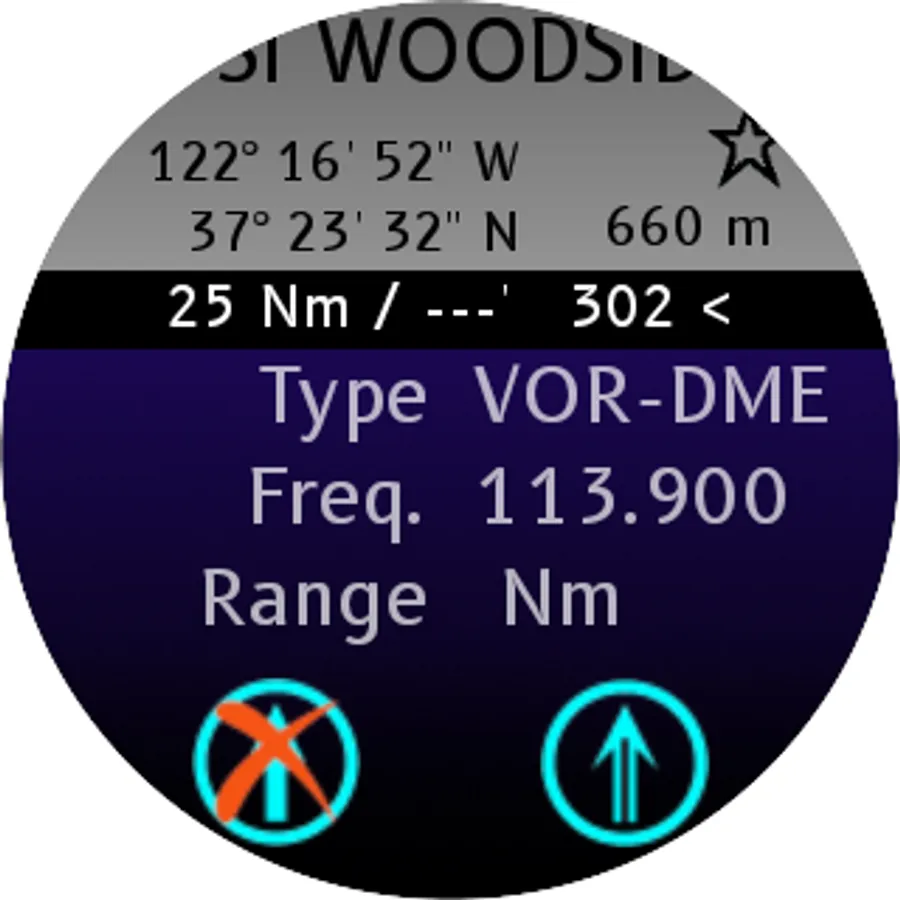 This application is a navigation assistant which provides useful information about all the airports and navaids located around you (40Nm range max). Directly on your watch, with your location information, this application helps you fly to airports around you with RMI-like, ADF-like and HSI features. It also provides radio communication frequencies. With an active internet connection, get also the current (METAR) and forecast (TAF) meteorological information and a moving land map (powered by MAPBOX) providing major and minor roads, rail roads and more.