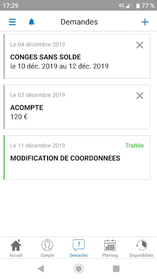 - Make requests for unavailability, deposit requests, etc ... And consult directly from your mobile the responses to these requests