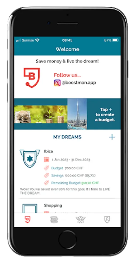 BoostMan app is not just simple, easy to use, and flexible to allow anyone track their expenses and stay in budget. It's also a set of principles, like the 50-30-20 budgeting method and how to use the app in our daily lives. Boostman challenges himself on travel mission to offer you the opportunity to win a remaining budget. To be automatically part of each contest for life, you only need to download the app once. Follow @Boostman.app & live the dream!