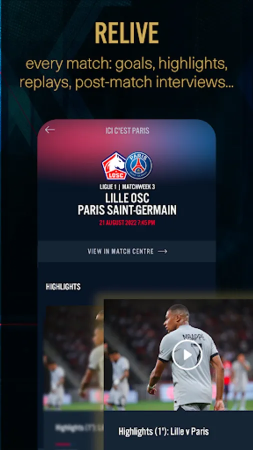 Goals, highlights, replay, post-match interviews ... at last one app allows you to relive every match, whatever the competition!