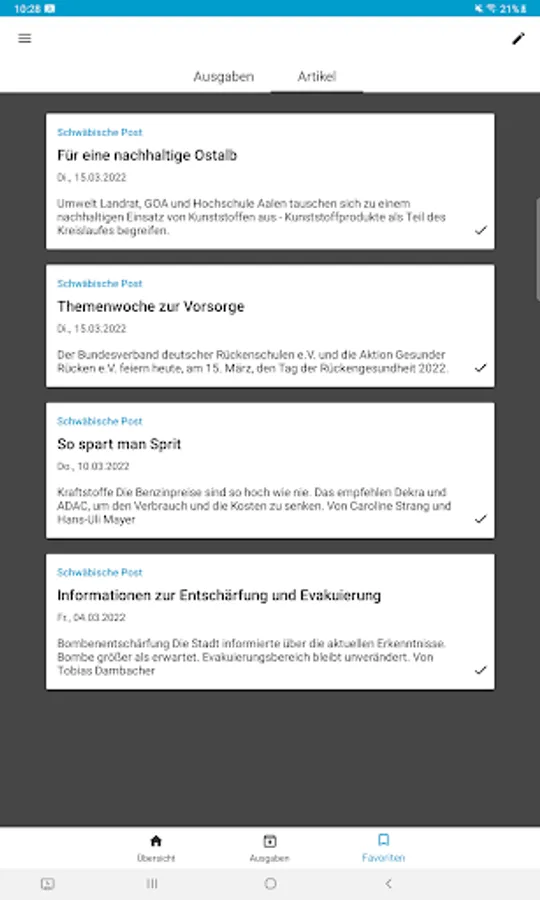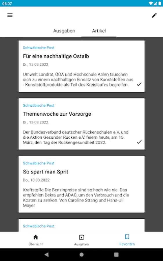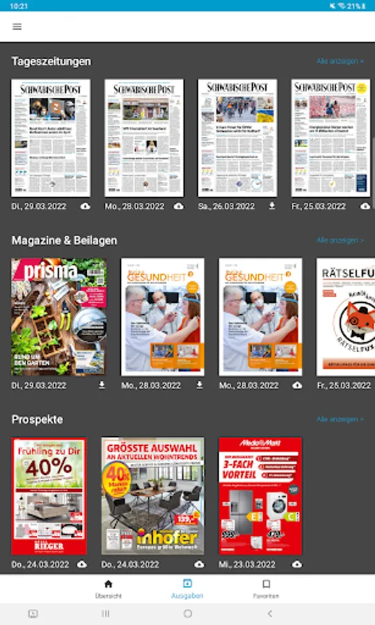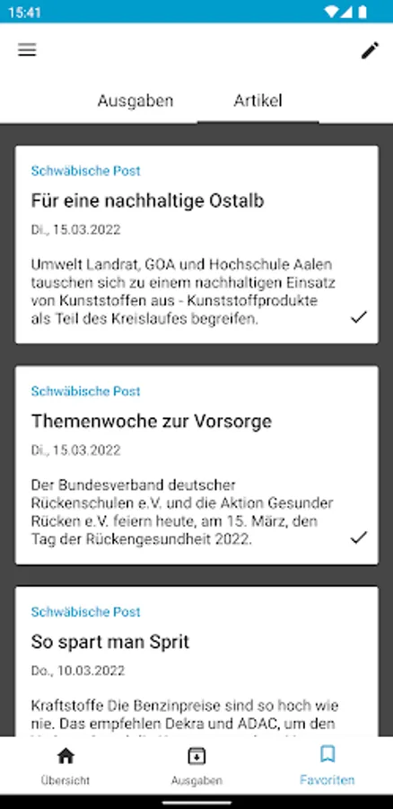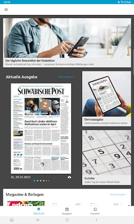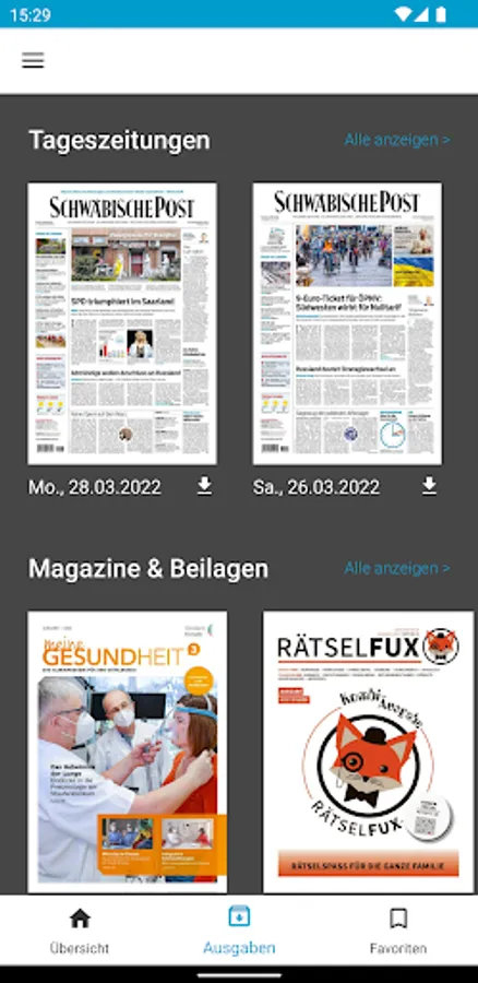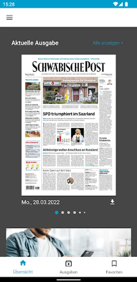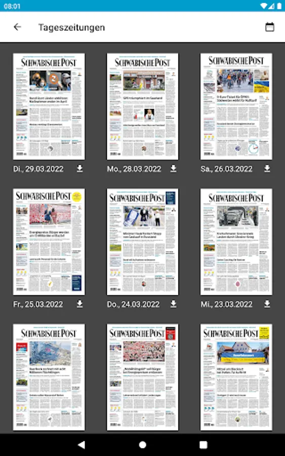One app - two newspapers: With your subscription, you can access the e-paper editions of the Schwäbische Post as well as the Gmünder Tagespost at any time (Android 5 and higher).