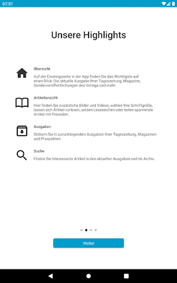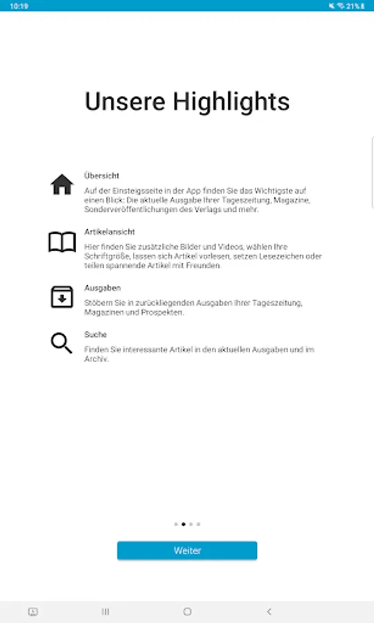 Reading comfort: All functions of the app are adapted for Android, so that the app can be operated smoothly. Outputs can also be read at any time in the loaded state without an active internet connection. In addition, the app has a device-specific reading function and font size adjustment.