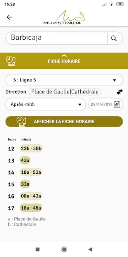 The application Muvistrada offers all the features to travel on your transit network: real-time and theoretical schedules, traffic info, route search, plans, purchase of tickets.