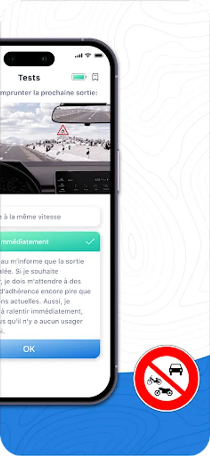 Interactive tests: After learning the rules, users can take a series of interactive tests to check their knowledge. The tests offer a variety of questions and situations that you might encounter on the road.