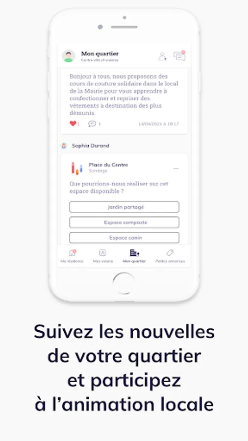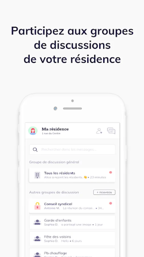 You will be able to access all the information concerning your place of life, follow the discussion groups of your residence and contact your neighbors more easily.