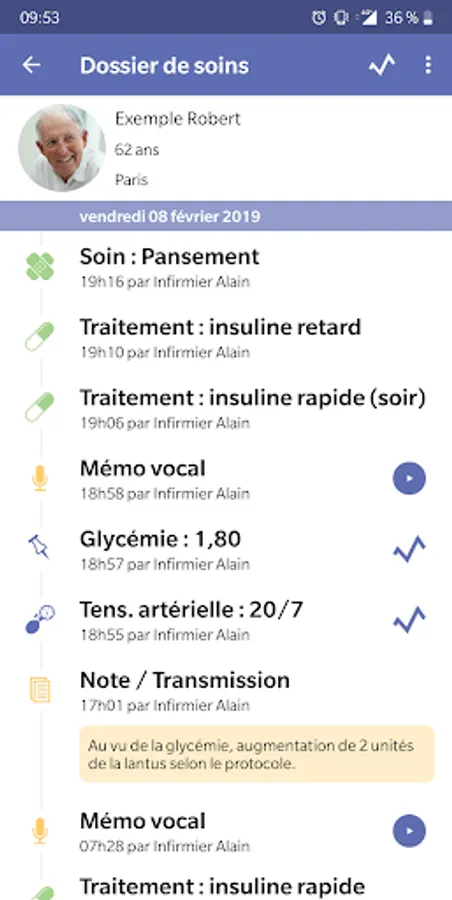 All cares made are traced, dated and signed. You know what nurses have done and what they have to do. The AlbuDoc application is completely free, without restriction, just download it. Once a Liberal nurse shares a record of care with you, you have access to it in its entirety, with no filter and no time limit.