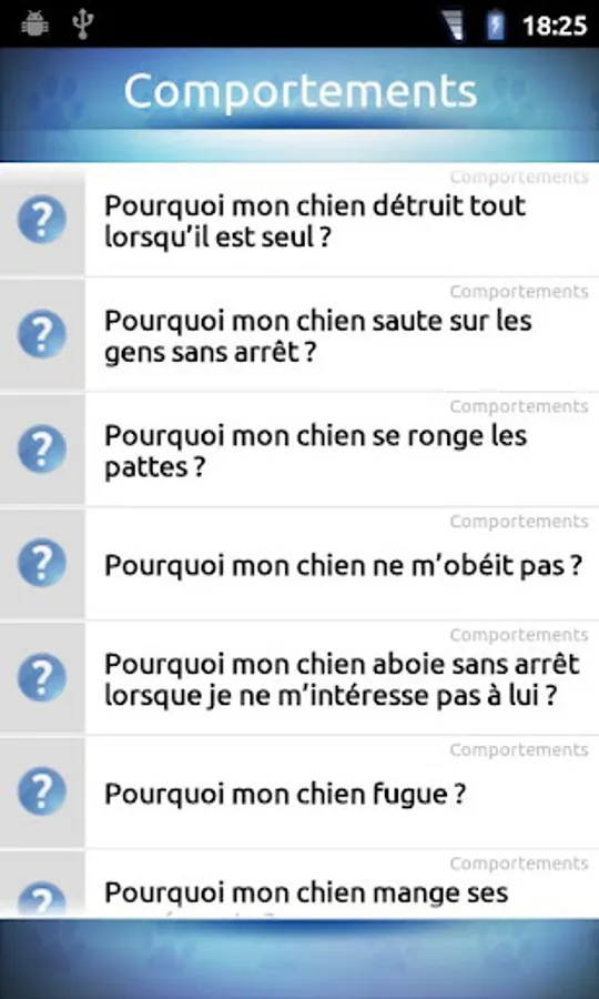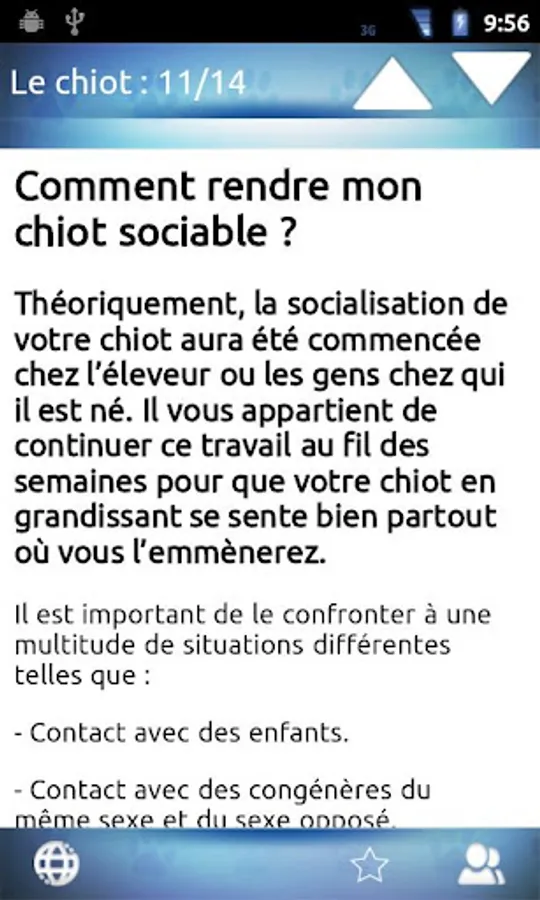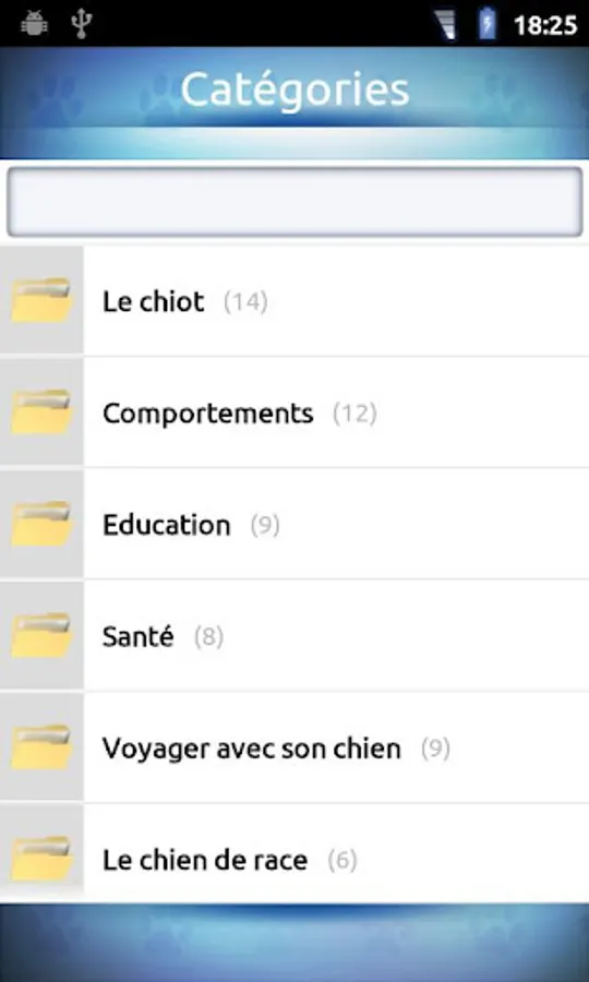 With integrated research and categorization (The puppy, behavior, education, health, travel with his dog, dog breed, feeding), quickly find the answer to your question and share it by email or Facebook. You can also categorize items that you want to keep easily on hand.