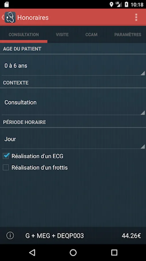 - Determination of consulting fees depending on the patient's age, the context (emergency regulation unjustified visit, hospitalization output ...) and the time period (day, holiday, night, mid ... ).