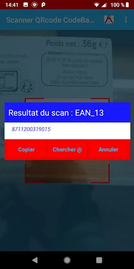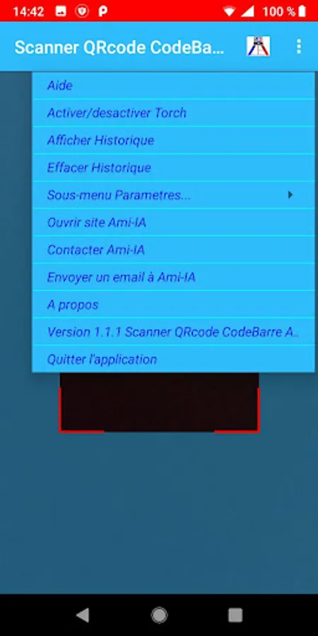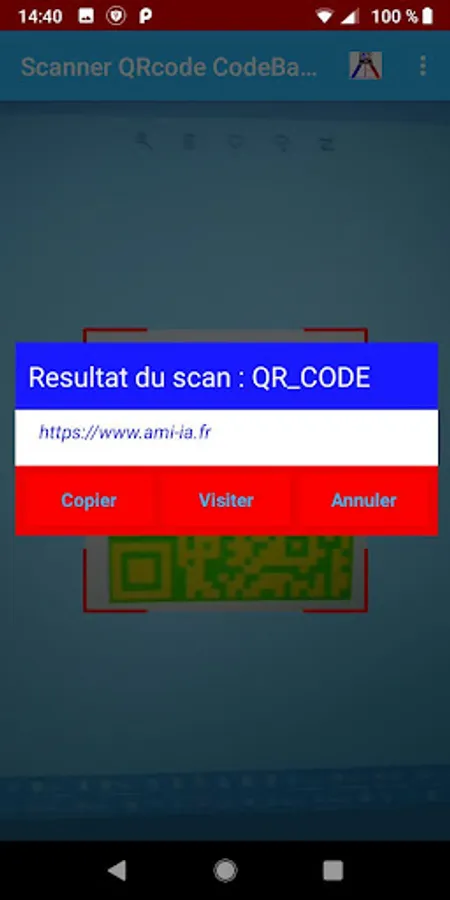 QRcode CodeBarre Ami-IA is an application that reads QRCodes or barcodes and allows you either to display the URL in a web browser or to copy the value to the clipboard.