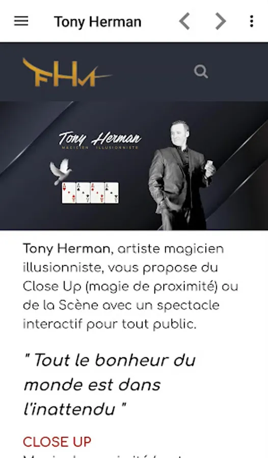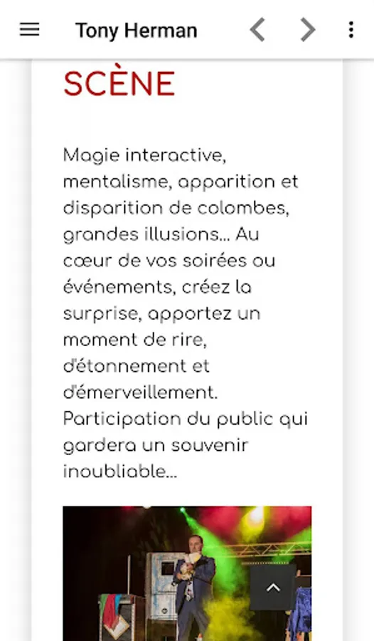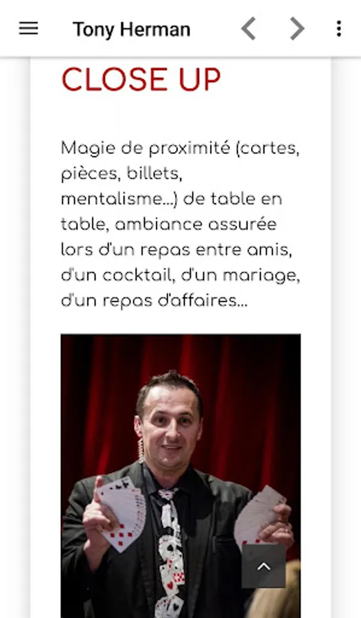 Tony Herman, artist magician illusionist, offers you Close Up (proximity magic) or Stage with an interactive show for all audiences.